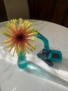 隣にはミニチュアの建機。建機とお花…合いそうもないですが、意外と違和感ないですよね?😊
